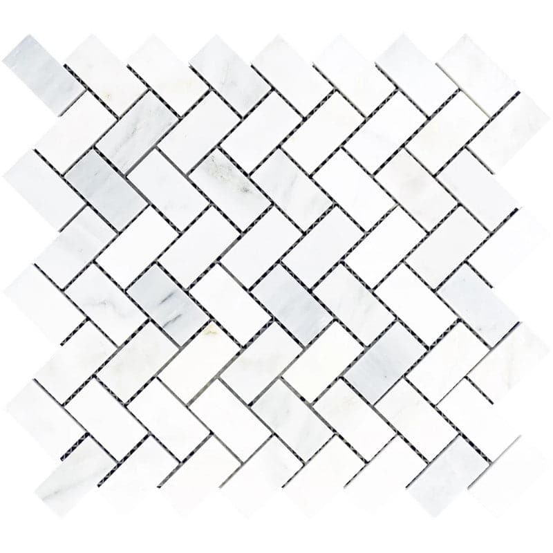 Asian Statuary (Oriental White) Marble 1x3 Herringbone Honed Mosaic Tile