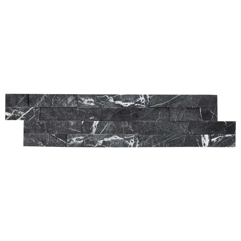 Nero Marquina Marble 6x24 Split Face Stacked Stone Ledger Panel