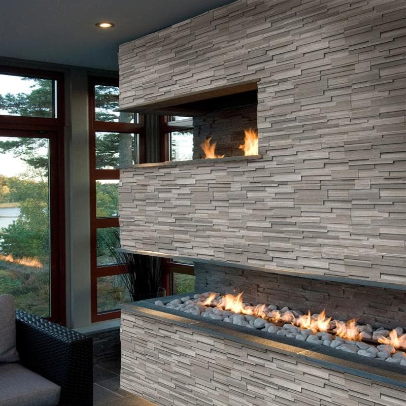 Haisa Dark (Gray Oak) Marble 3D 6x24 Stacked Stone Ledger Panel