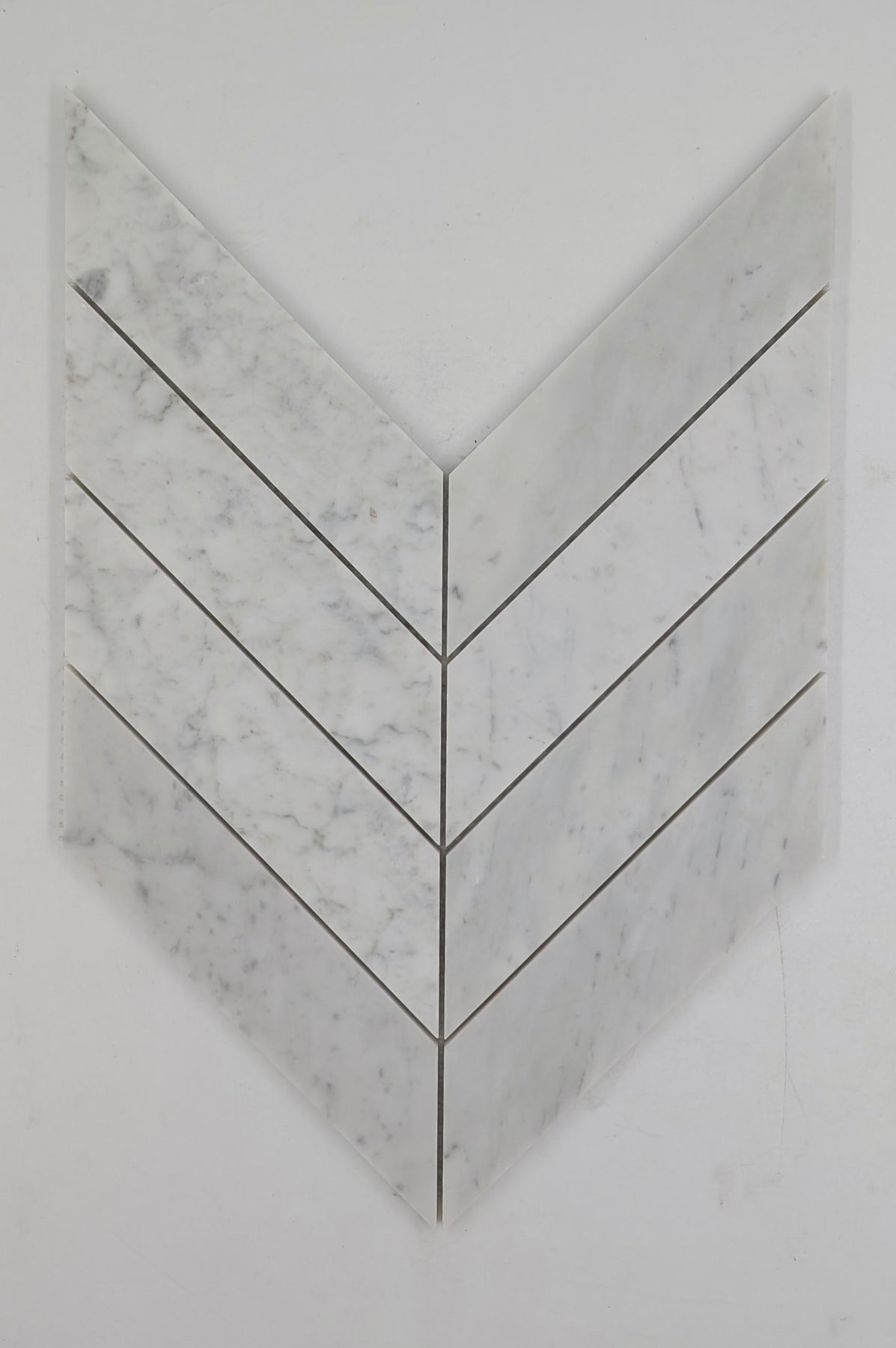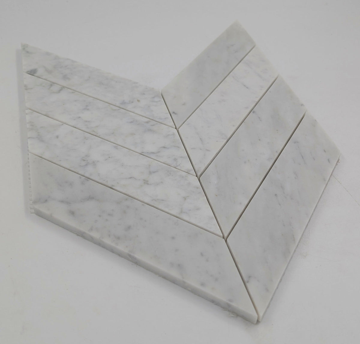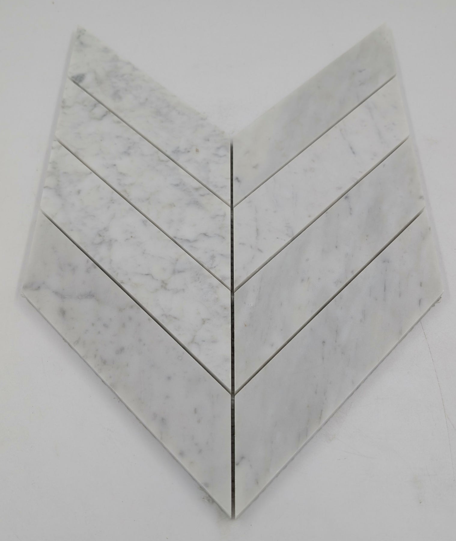 2x8 Carrara White (Large) Chevron Polished Marble Mosaic Tile