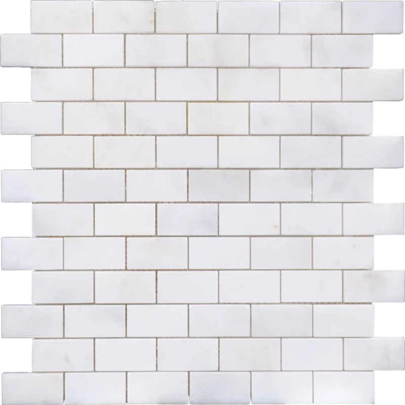 Afyon White Marble 1x2 Polished Brick Mosaic Tile
