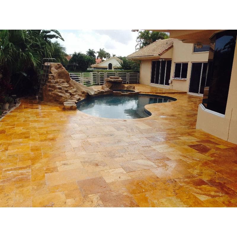 Our Premium Gold travertine is a stunning natural stone quarried in Turkey. Its rich golden color adds a touch of luxury and elegance to any space. The unique beauty of this stone lies in its intricate veining, which can vary from brown to gold, giving it a distinctive and captivating look. Whether you want to enhance your floor, shower, kitchen backsplash, bathroom walls, decorative wall, or even your fireplace, our Gold travertine tiles, mosaics, and moldings are the perfect choice. Their versatility and timeless appeal will create a truly remarkable and sophisticated atmosphere in your home or commercial space.
